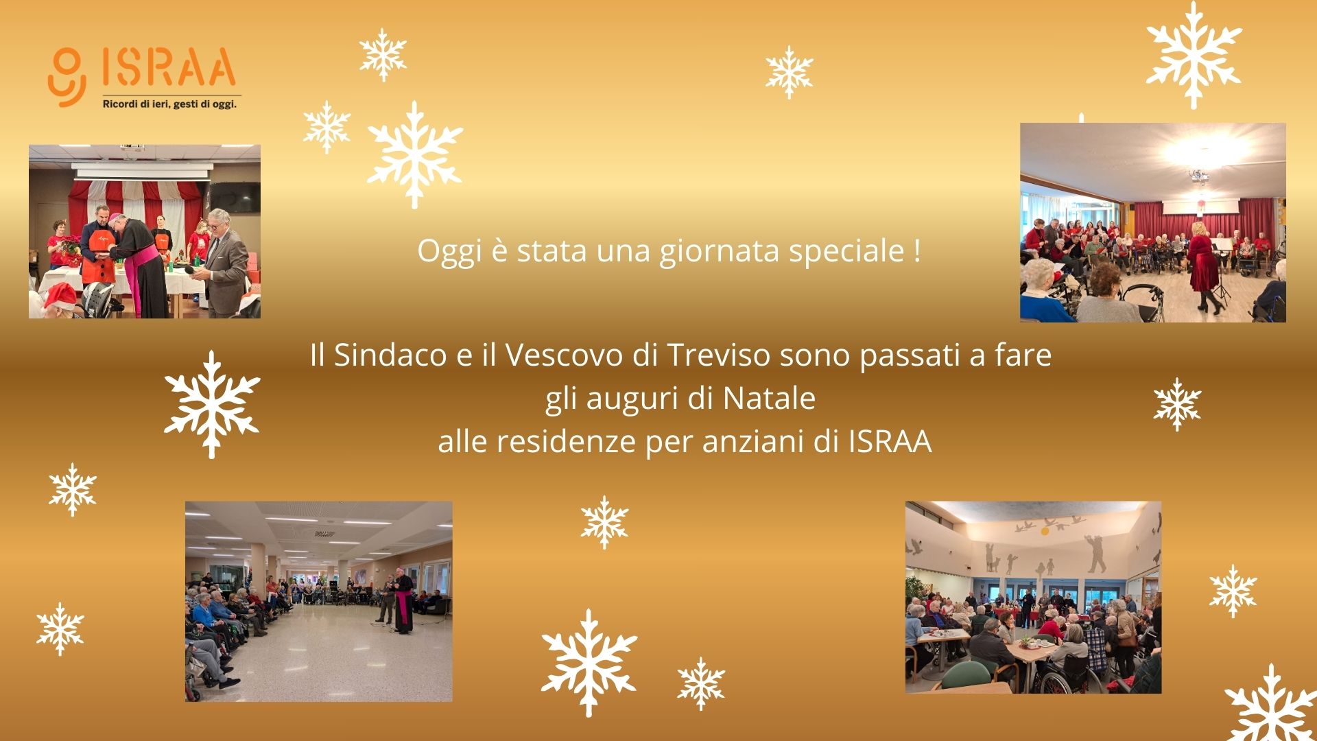 Oggi le quattro residenze per anziani gestite da ISRAA – Istituto per Servizi di Ricovero e Assistenza agli Anziani hanno vissuto un momento speciale: il Sindaco di Treviso e il Vescovo hanno fatto visita ai residenti, ai famigliari e agli operatori, portando i loro auguri di Natale.