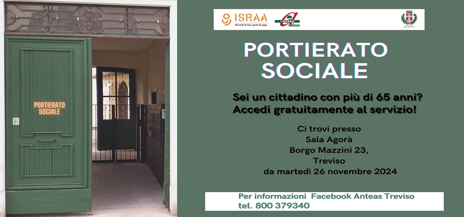 Il Portierato sociale è uno spazio a cui possono accedere, gratuitamente, i cittadini con più di 65 anni. Promosso da ISRAA e ANTEAS Treviso, questo servizio rappresenta un valore aggiunto per tutta la comunità, in quanto pensato per offrire un supporto concreto e assistenza su diverse tematiche quotidiane. Presso lo sportello potrete ricevere sostegno nel disbrigo di pratiche amministrative, utilizzo di smartphone e pc, prenotazioni e ritiro referti, consulenza sull'amministratore di sostegno e su questioni fiscali, informazioni sui servizi territoriali e la possibilità di accedere al trasporto sociale. Il servizio è aperto dal martedì al venerdì e include un punto di ascolto con uno psicologo, per garantire un sostegno anche a livello emotivo. Invitiamo tutti i cittadini a venirci a trovare: volontari competenti sono pronti ad offrire aiuto e supporto personalizzato.